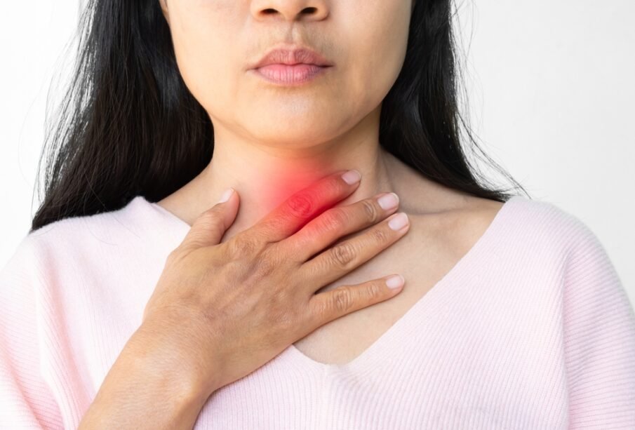 • Sajūta, ka aiz krūšu kaula kaut kas iesprūst, vai spiediena sajūta šajā apvidū.